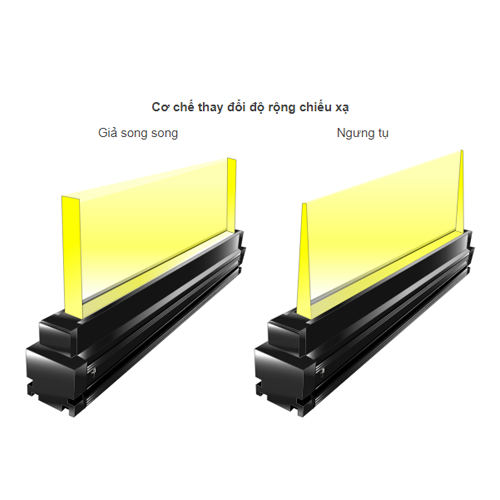 ● Chiếu sáng đường LED với cơ chế hội tụ thay đổi (được phát triển độc lập) có thể thay đổi ánh sáng chiếu xạ từ ánh sáng giả song song sang ánh sáng ngưng tụ