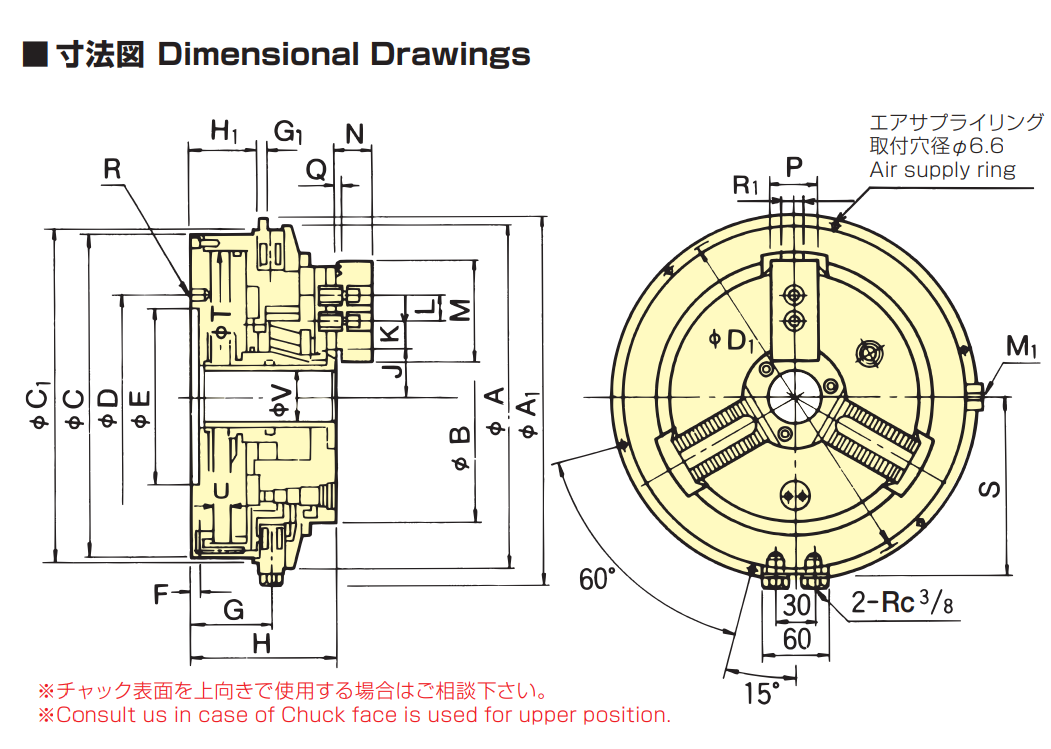 Mâm cặp khí 3 chấu Kitagawa UVE-K series.