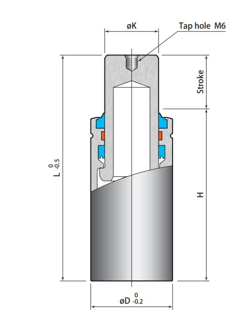 | Model | Stroke mm | Cylinder oD mm | Initial force kN /kgf | Full stroke load kN/ kgf | Mass | L mm | H mm | K mm | ||